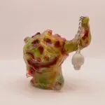 Destaca por sus diseños audaces y detallados, que a menudo incorporan calaveras, máscaras y patrones intrincados. Utiliza colores neón brillantes, degradados aerografiados y líneas que recuerdan a tatuajes, lo que le confiere a sus figuras una estética inconfundible. Frecuentemente personaliza juguetes de sofubi, añadiendo su toque artístico a plataformas ya existentes, además de crear diseños originales.